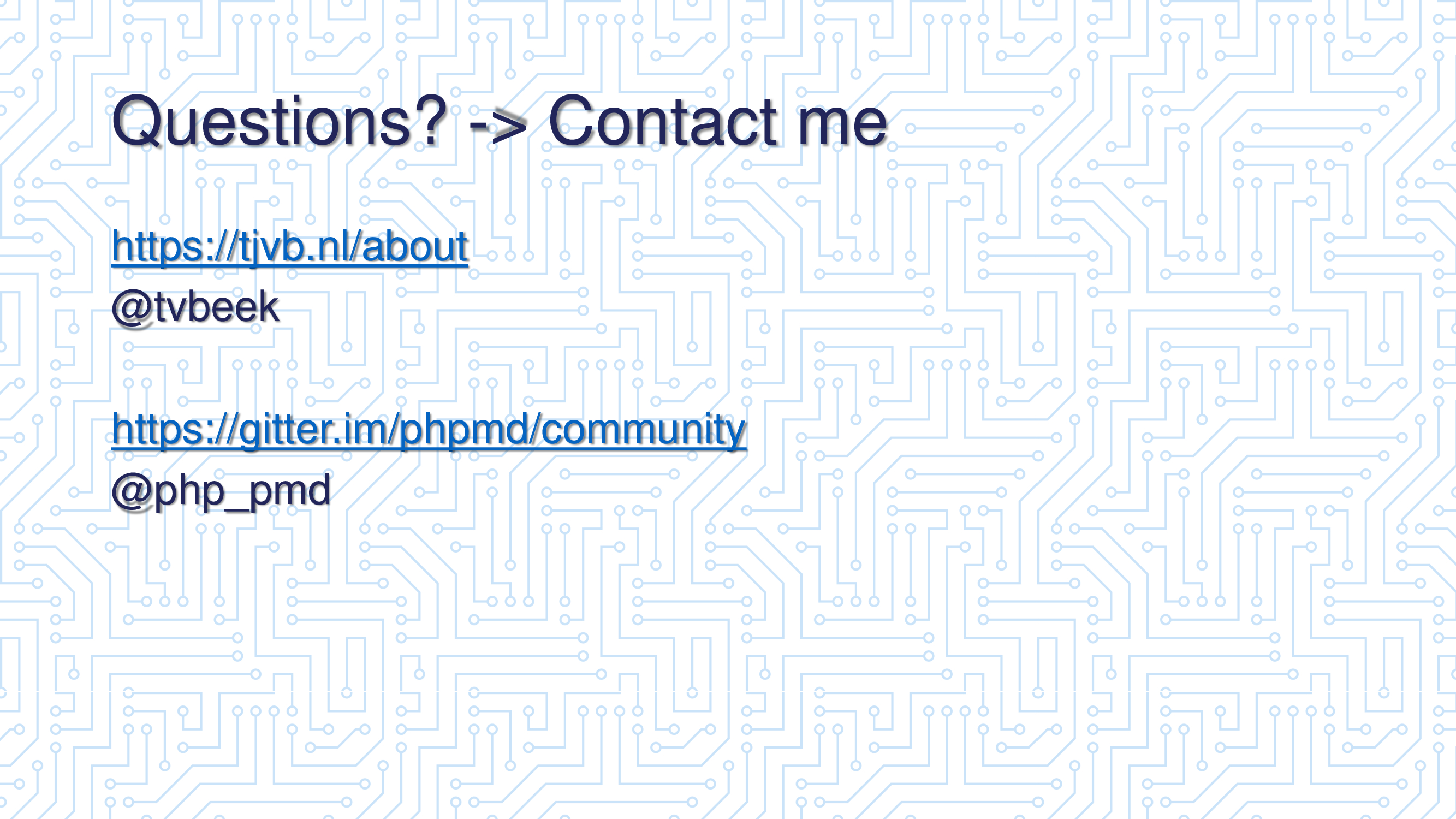 On 7 October 2022 I had the honor to give a lightning talk on Full Stack Europe 2022 about PHPMD. The title was: Prevent a mess with PHP Mess Detector. And the slides are here below.